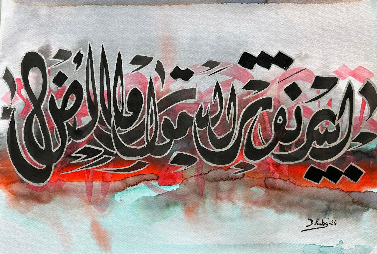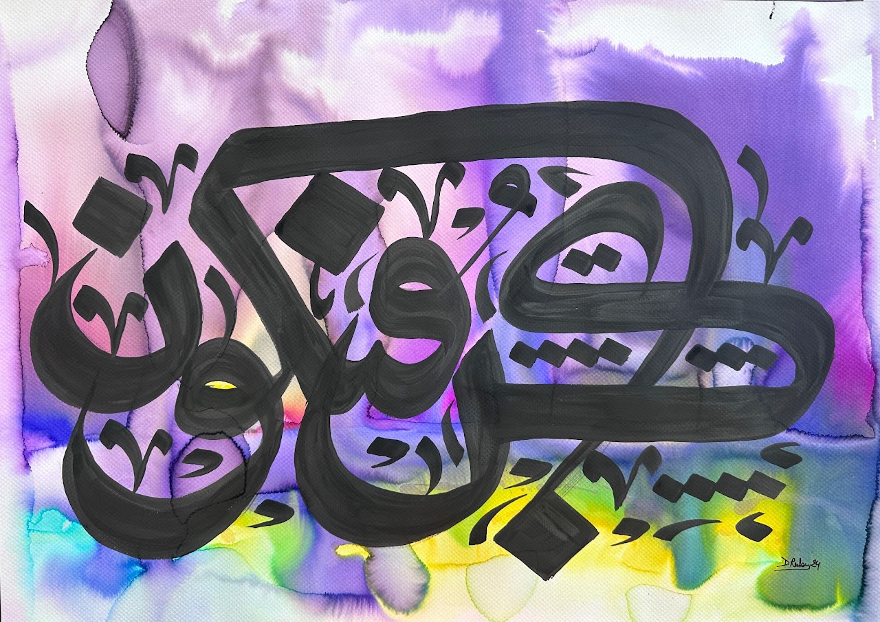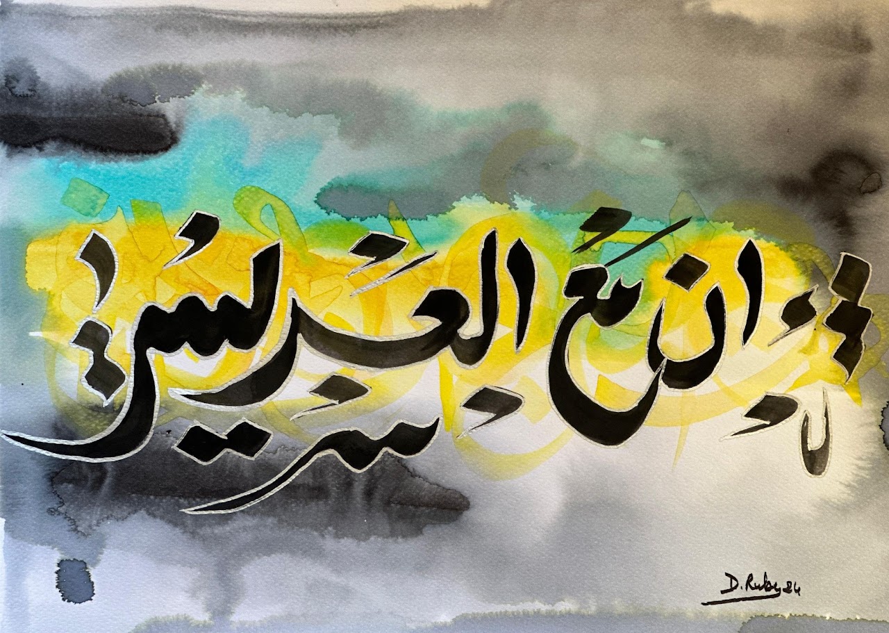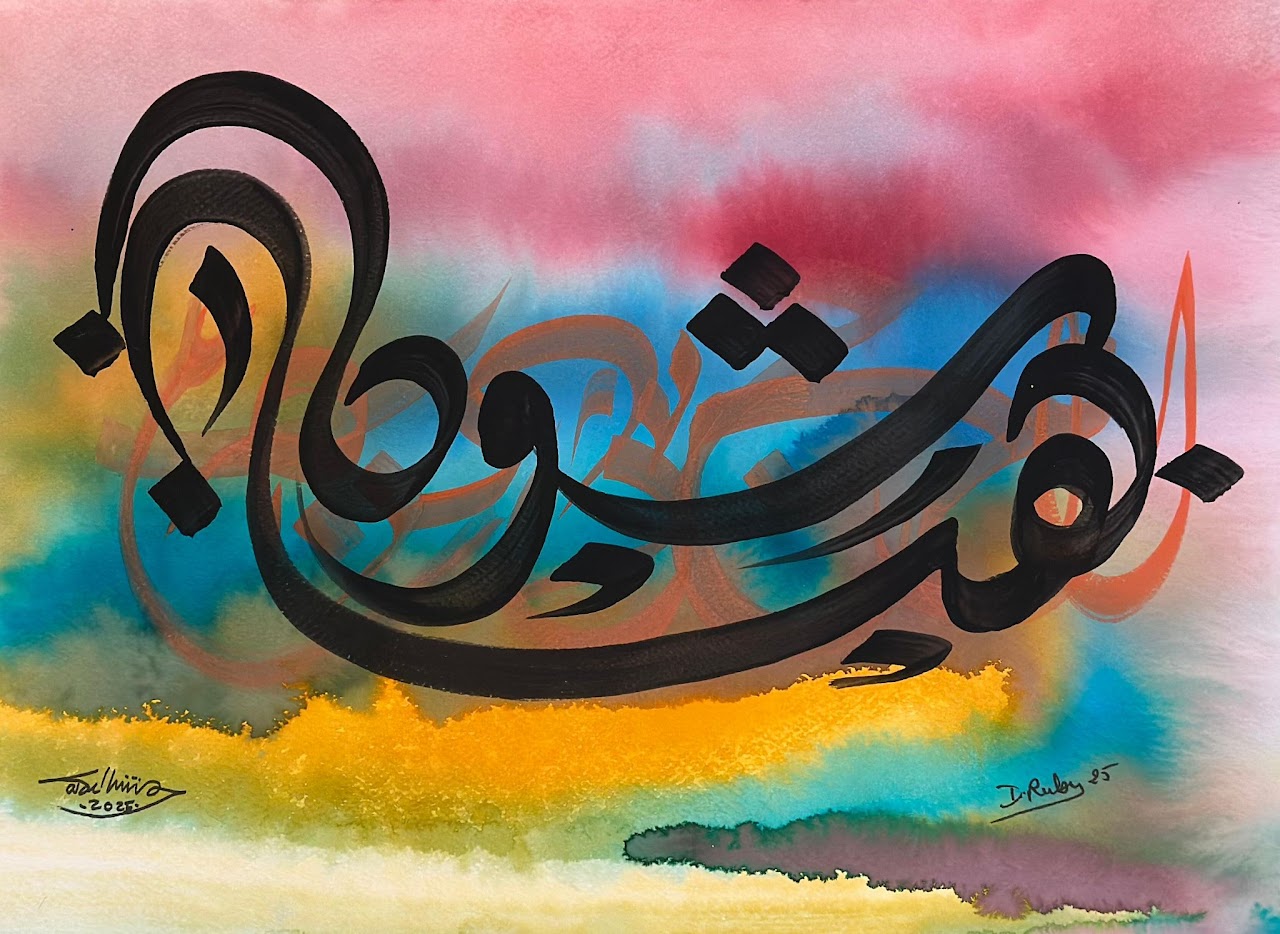 “Arabic calligraphy is more than an art form; it’s a language that speaks to the soul. In my calligraphy works, I use traditional scripts and holy verses infused with modern expression to convey the essence of precious stones, virtues, and spirituality. Each line and curve is a journey into the beauty and rhythm of the written word, merging my cultural heritage with contemporary aesthetics.”