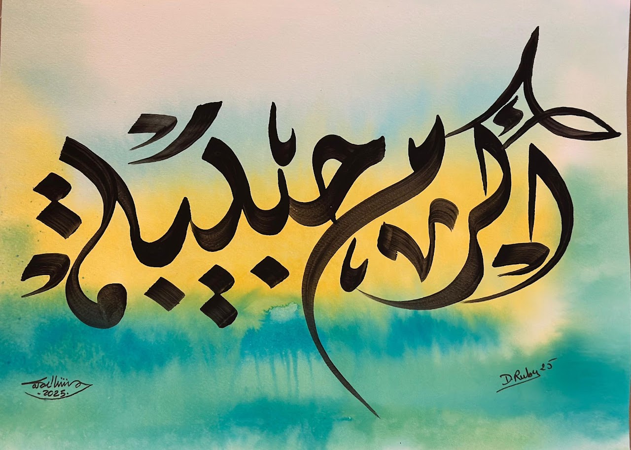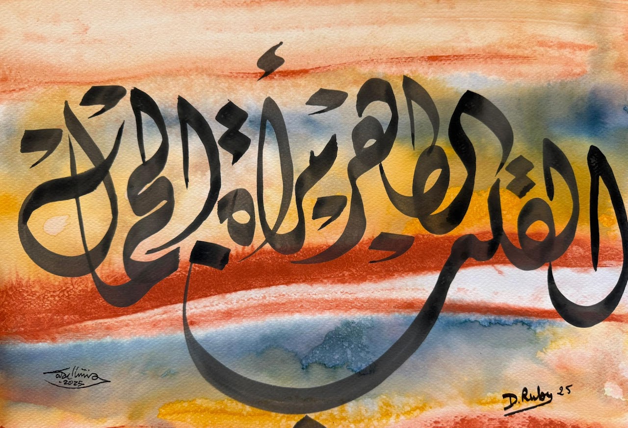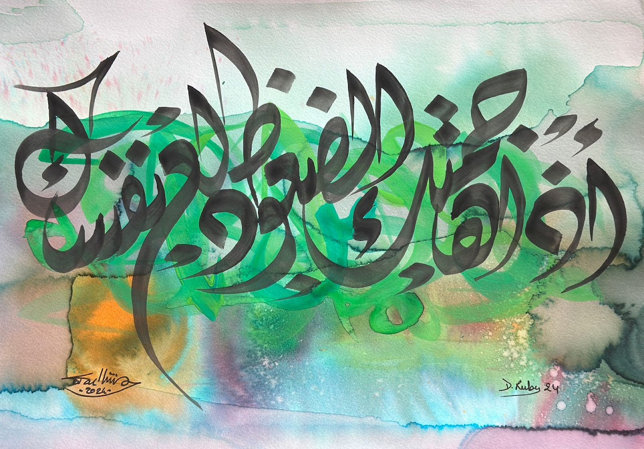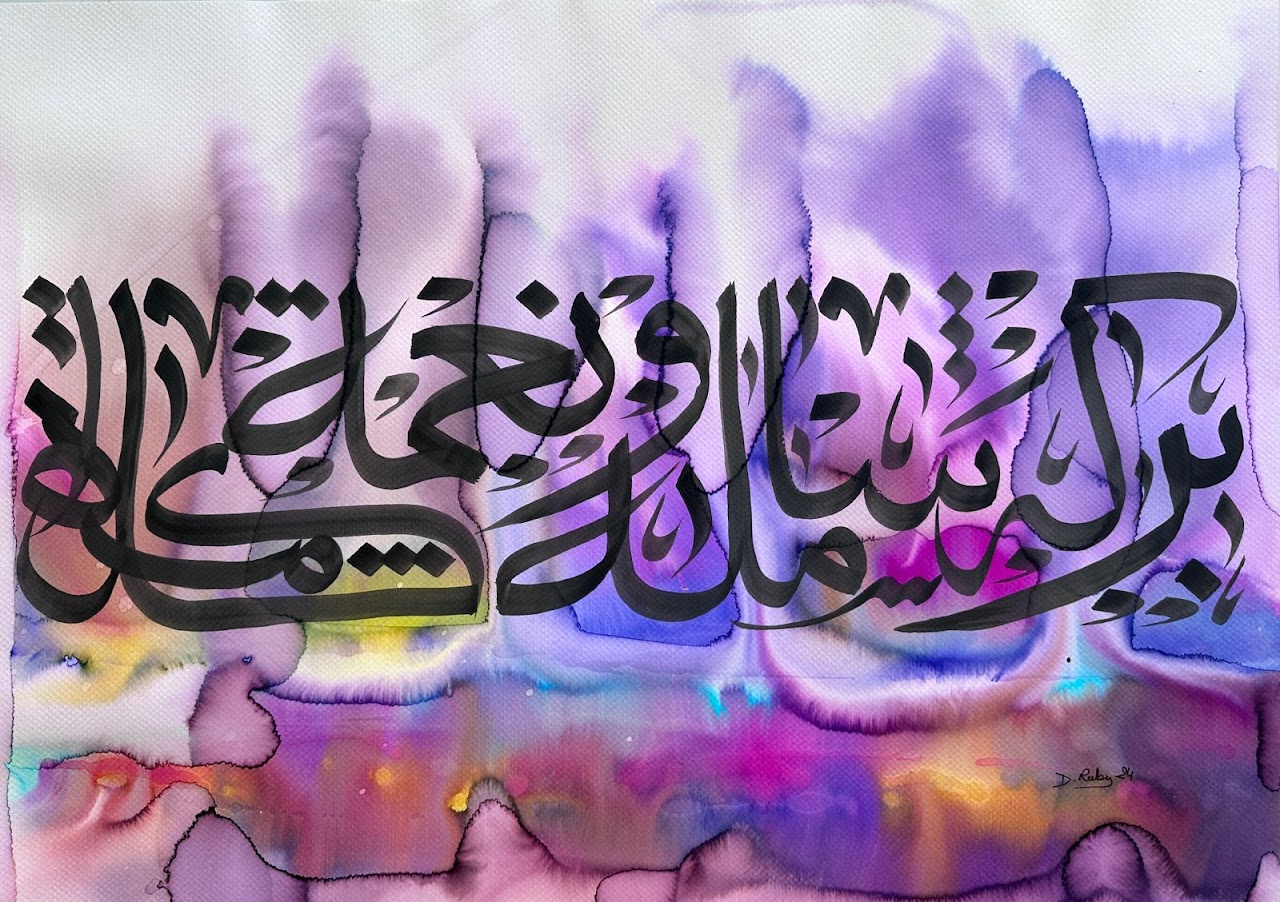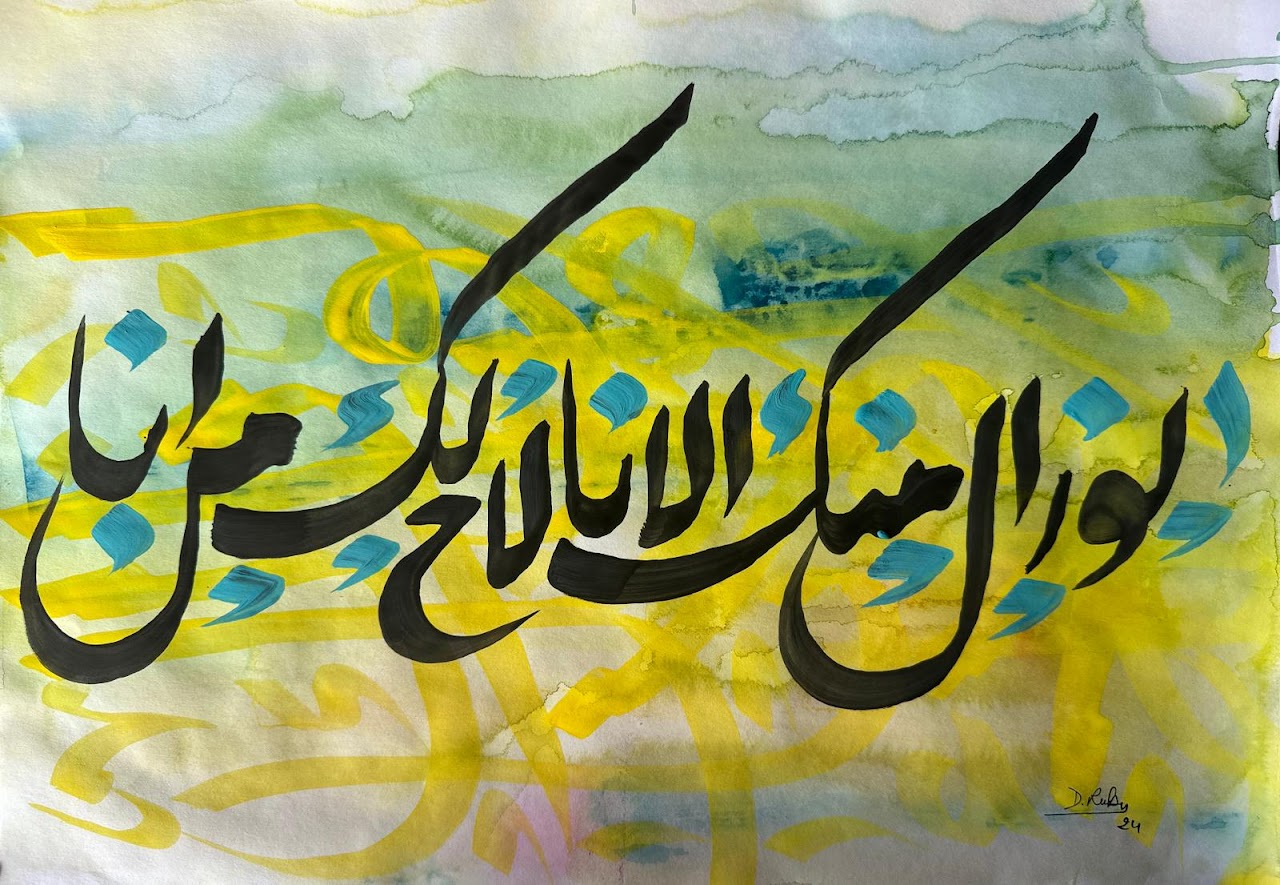 “Arabic calligraphy is more than an art form; it’s a language that speaks to the soul. In my calligraphy works, I use traditional scripts and holy verses infused with modern expression to convey the essence of precious stones, virtues, and spirituality. Each line and curve is a journey into the beauty and rhythm of the written word, merging my cultural heritage with contemporary aesthetics.”