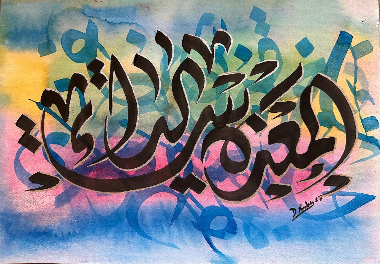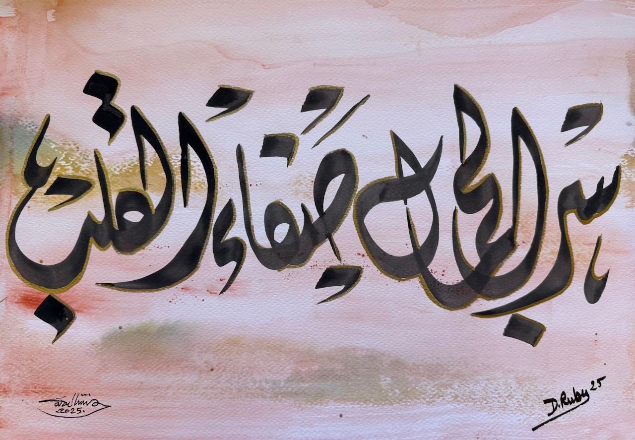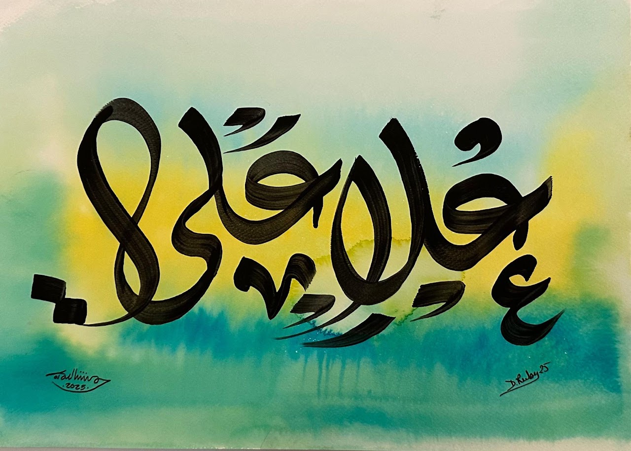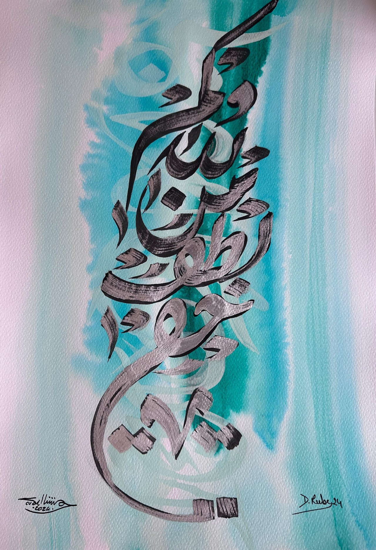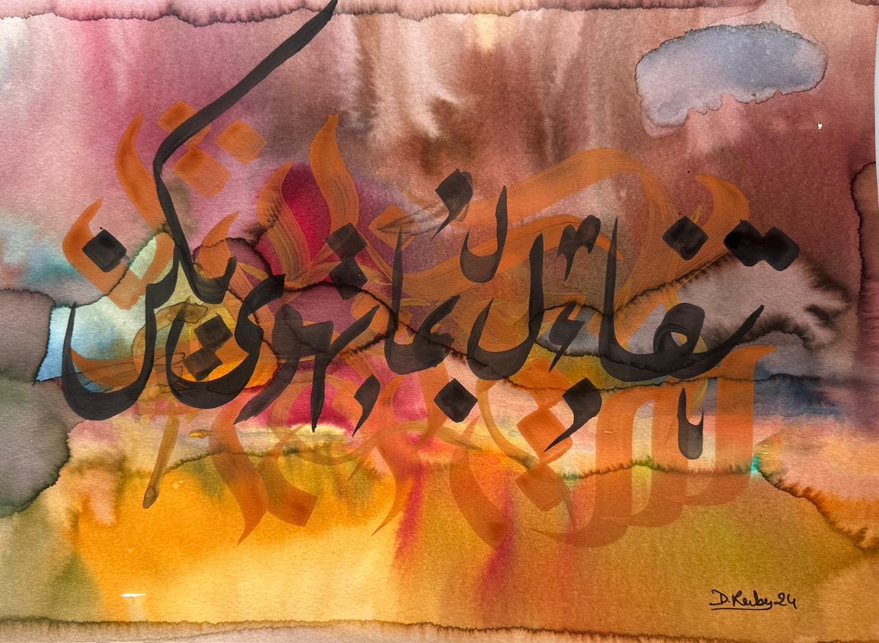 “Arabic calligraphy is more than an art form; it’s a language that speaks to the soul. In my calligraphy works, I use traditional scripts and holy verses infused with modern expression to convey the essence of precious stones, virtues, and spirituality. Each line and curve is a journey into the beauty and rhythm of the written word, merging my cultural heritage with contemporary aesthetics.”